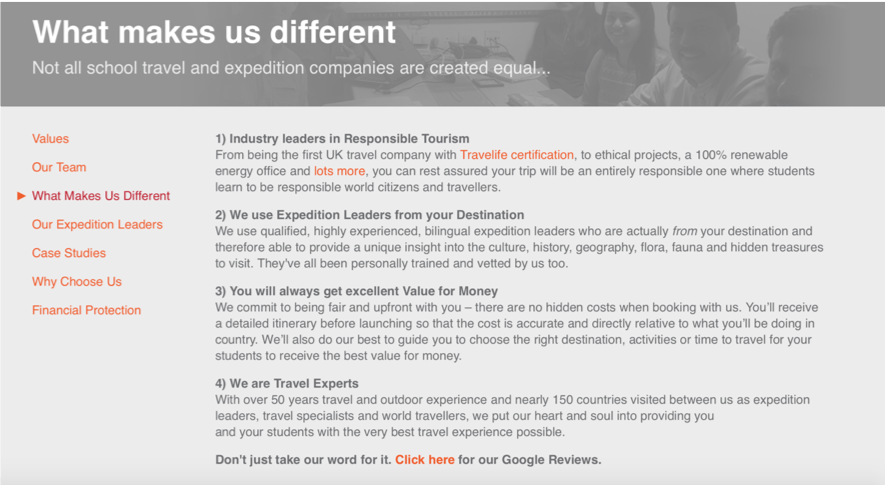 Screenshot of STC Expeditions ‘What Makes us Different’ Page. Retrieved from: https://www.thestc.co.uk/company/what-makes-us-different/